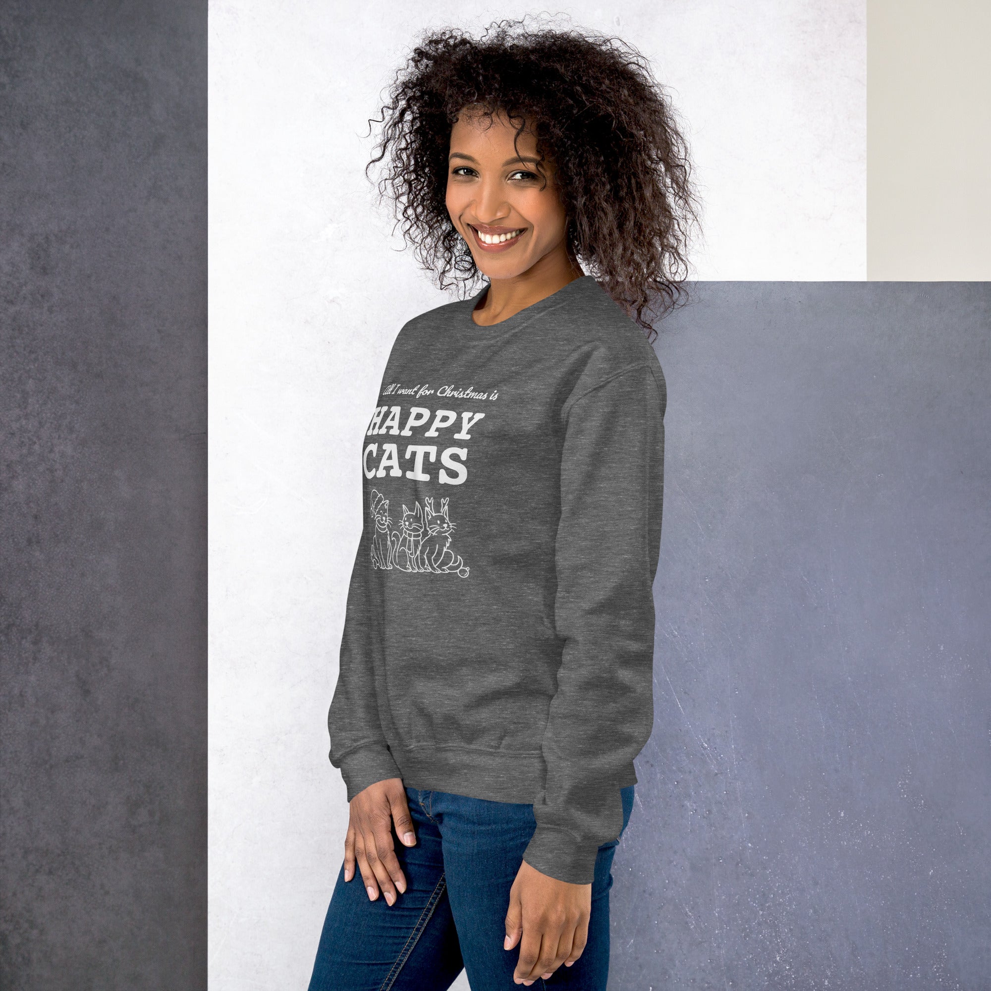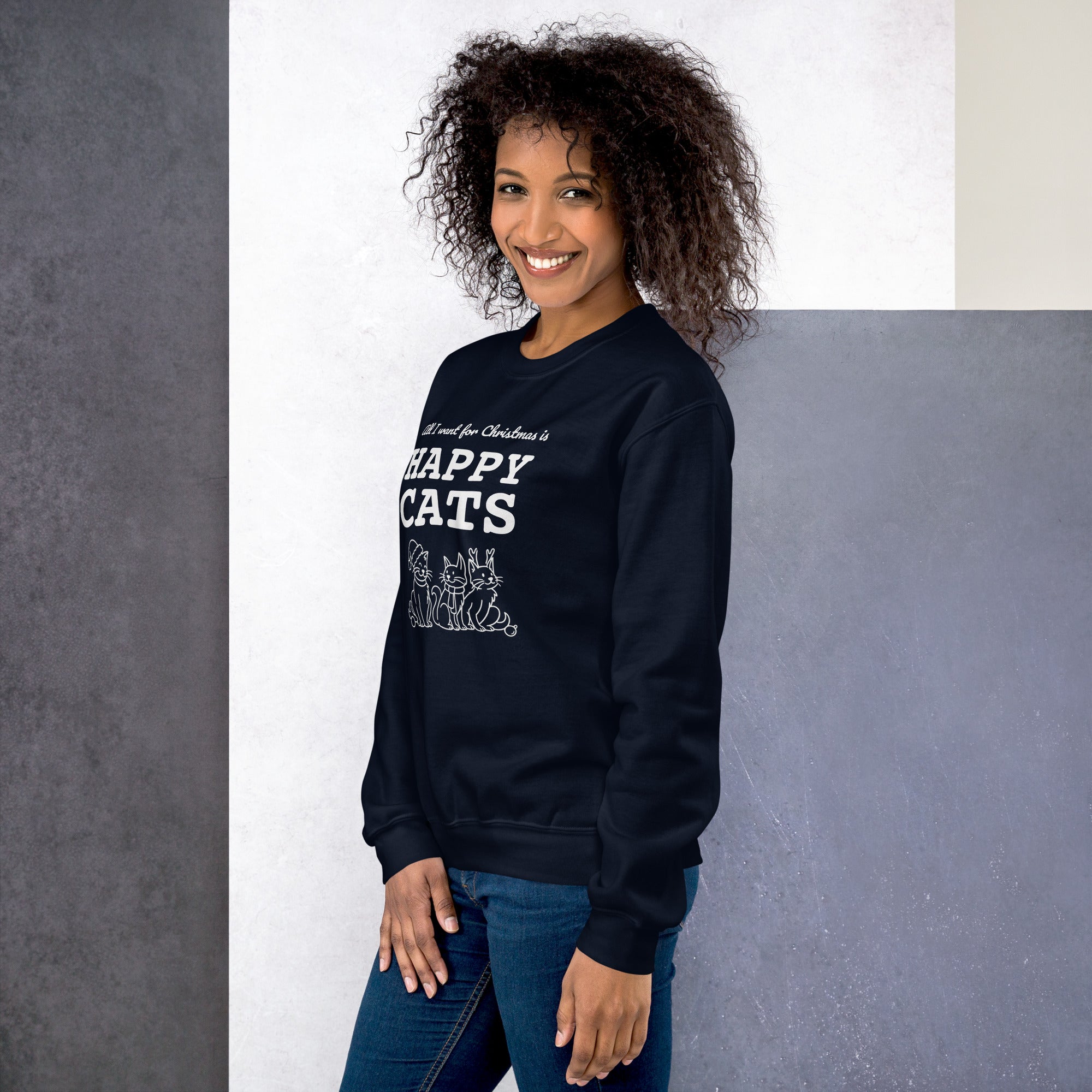 Happy Cats Kersttrui (donkere kleuren met witte letters)